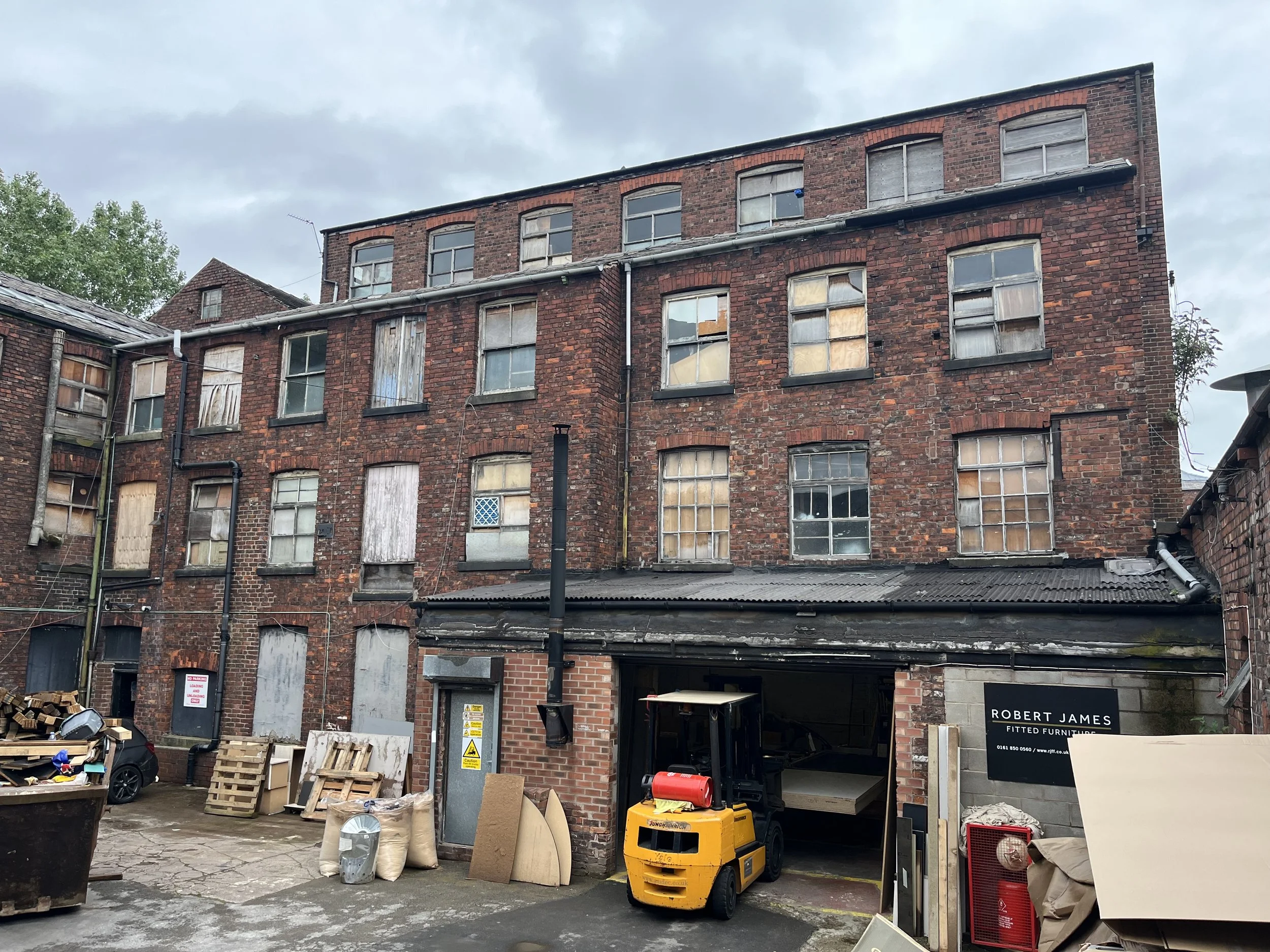 Currently, it has a range of tenants, including Manchester Sofa Company, Fab Fun Carting, and Gym Life Manchester, and it will undergo an extensive refurbishment to make more space available.